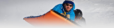 For the best ride and control, lay on your stomach, descend downhill head first, skeleton style. Steer by dragging your feet behind the sled, however you can go down the hill anyway you'd like.